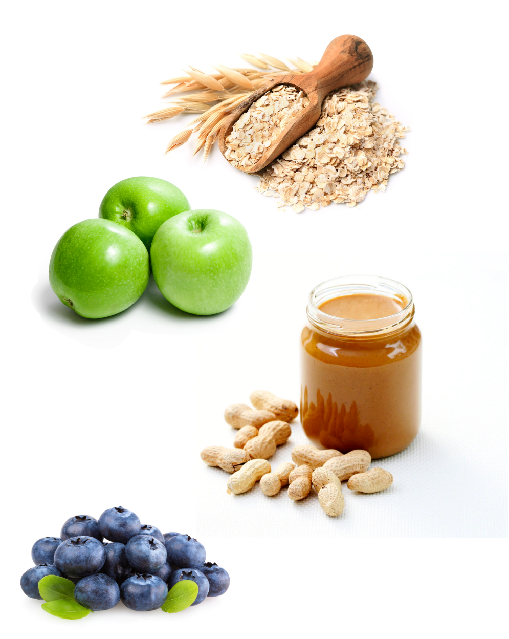 To combat this, we use "texture confusion" by incorporating real bits of whole oats, peanuts, apples, and blueberries into our soft dough.