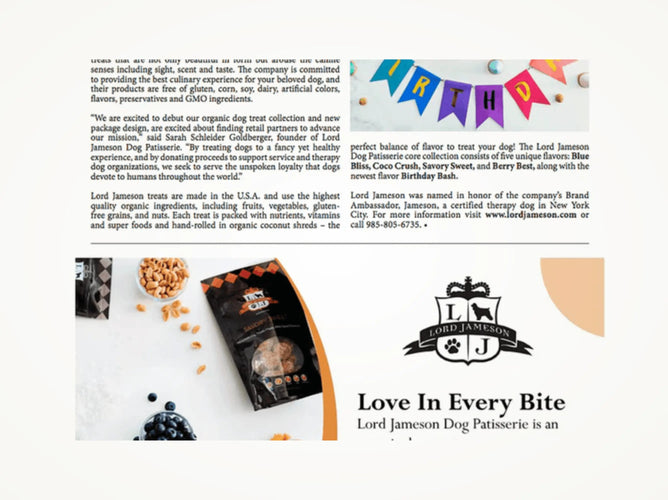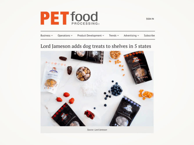 Lord Jameson produces a collection of premium, organic soft dog treats using human-grade ingredients.