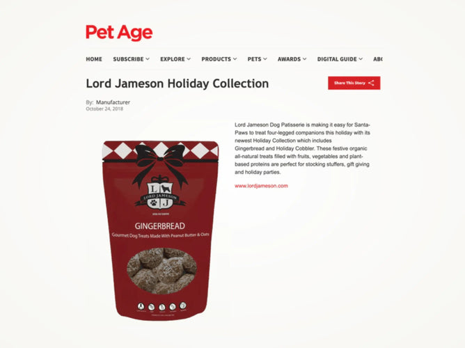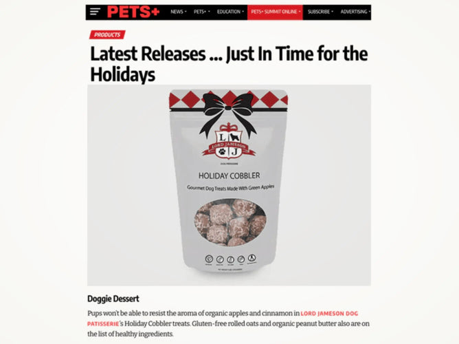 Lord Jameson Dog Patisserie is making it easy for Santa-Paws to treat four-legged companions this holiday with its newest Holiday Collection which includes Gingerbread and Holiday Cobbler.