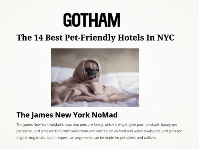 Get Leashed staff favorite THE GANSEVOORT HOTEL GROUP recently revealed a new partnership with LORD JAMESON DOG PÂTISSERIE, devoted to the well-being of traveling pups and their families. The result is nothing short of a boon to Manhattan addicted style mavens and their precious pooches.