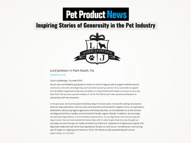 Lord Jameson is expanding its organic dog treat collection into Texas, Louisiana, New Mexico, Oklahoma and Arkansas with a new distributor partnership with Alamo Pet Experts.