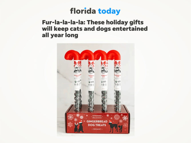 For good little — and big — dogs, Lord Jameson offers a custom-made candy cane with the company’s signature organic gingerbread recipe. Each treat, festively rolled in organic, plant-based red and green coconut shreds, is soft and easy to break apart.