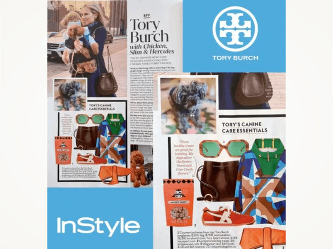 Tory Burch has personally selected Lord Jameson's Savory Sweet organic dog treats as her favorite treats for her dogs!