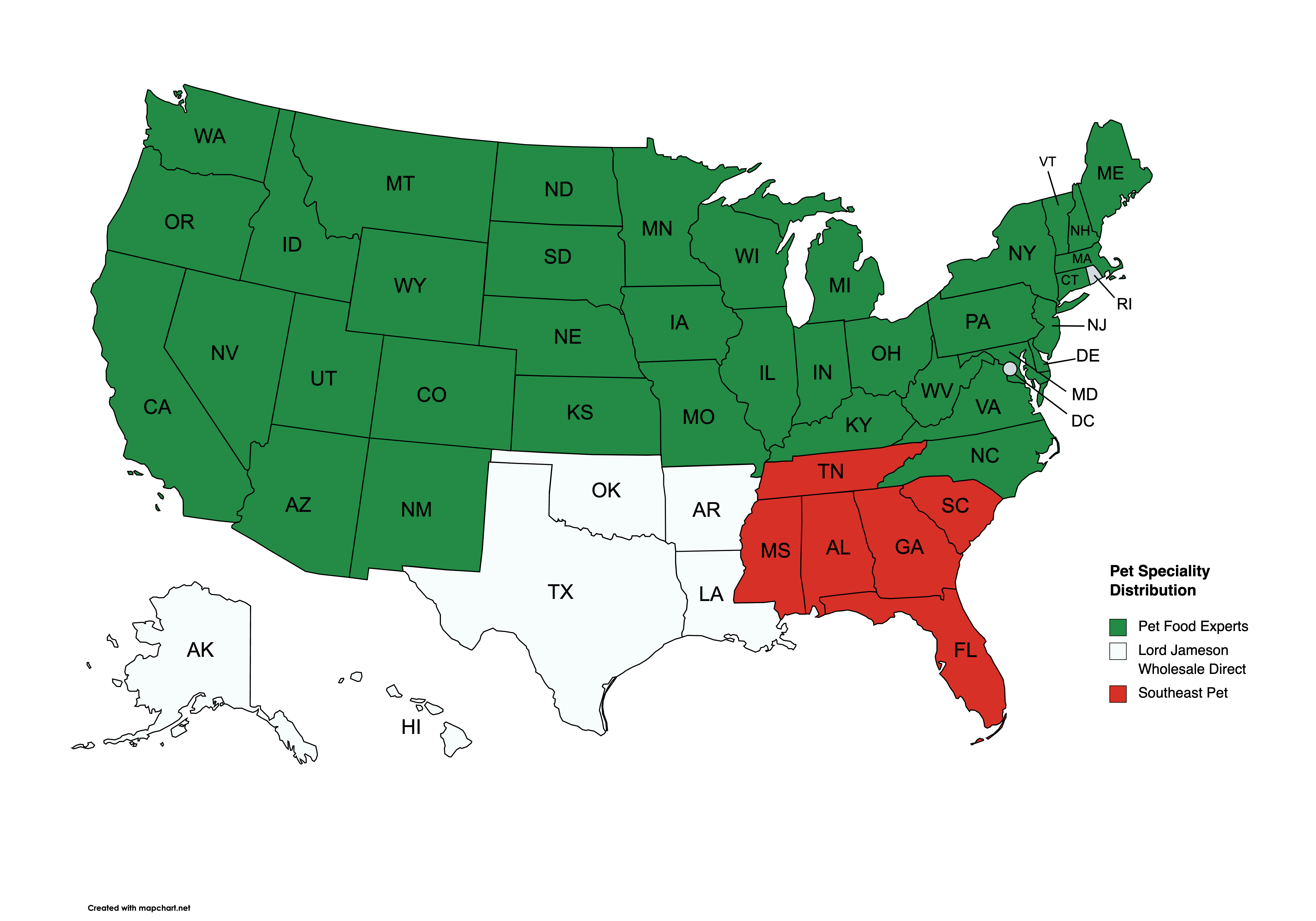 Our process is simple. If you are a pet store you can find a map of our wonderful pet food distributor partner contacts with links to their website for registration below.